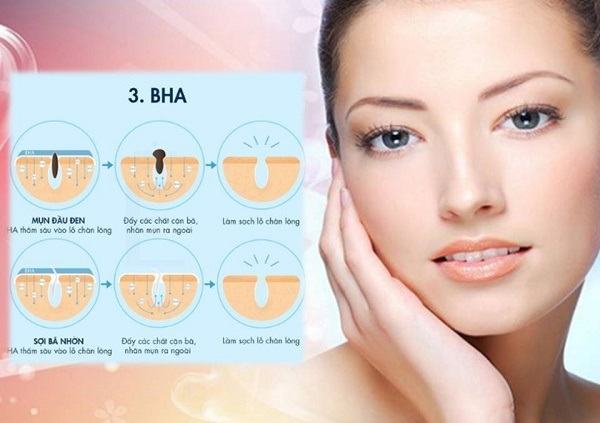 Như đã nói ở trên, BHA sẽ có khả năng tan trong dầu. Do đó, hoạt chất này có thể đi sâu vào lỗ chân lông để hòa tan chất nhờn, cặn bã trên da. Đồng thời, BHA còn làm bong tróc những tế bào da chết trên lớp ngoài cùng của da, kích thích tái sinh tế bào mới cho da. BHA sẽ hoạt động hiệu quả trên da với nồng độ từ 1 – 2% với độ pH từ 3 – 4.