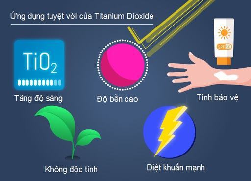 Titanium dioxide là một loại khoáng chất tự nhiên có màu trắng dạng bột thường được sử dụng để làm chất tạo màu, làm mờ hay làm sáng. Điểm nổi bật của thành phần này là khả năng chống nắng vô cùng tốt và thường được gọi với cái tên khác như chất cản tia.