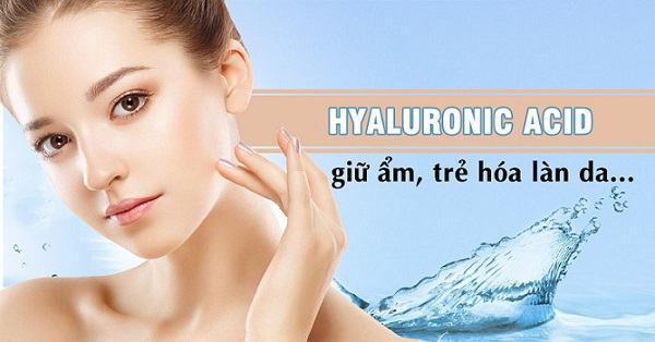 Khi tiếp xúc với môi trường nước trên da, những phân tử Hyaluronic Acid sẽ khuếch tán, đồng thời gia tăng trọng lượng lớn hơn 500-1000 lần trọng lượng của nó. Hyaluronic Acid sẽ hút ẩm ở môi trường ngoài, ở các tầng da bên dưới để đưa vào bề mặt da. Chính nhờ khả năng giữ nước đó mà Hyaluronic Acid mang đến cho làn da những tác dụng rất tuyệt vời trong việc dưỡng ẩm, chống lão hóa.
