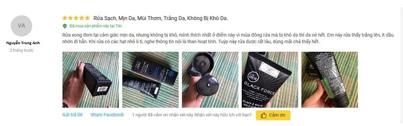 Trên website NAVA.VN – đại siêu thị mỹ phẩm bán lẻ lớn nhất cả nước, sản phẩm Sữa Rửa Mặt Nam Ngăn Ngừa Mụn Sạch Nhờn Trắng Da Hàn Quốc Cao Cấp Dabo Black Force nhận được rất nhiều phản hồi từ người dùng như: